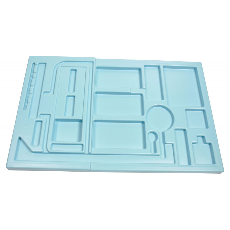 Boxeneinsatz Elektrik Set 8 "inno"gerätegeformter Facheinsatz, robust und langlebig, zur optimalen Übersichtlichkeit und Auffindbarkeit der Einzelteile eines Gerätesets, der Einsatz und der Boxeneinlageplan erleichtern das Wiedereinräumen nach dem Experiment und die Wiederbeschaffung fehlender oder defekter Teile Material: Hartpolystyrol (HPS), farbigAbmessungen: 55 x 35 x 2 cmMasse: ca. 410 g