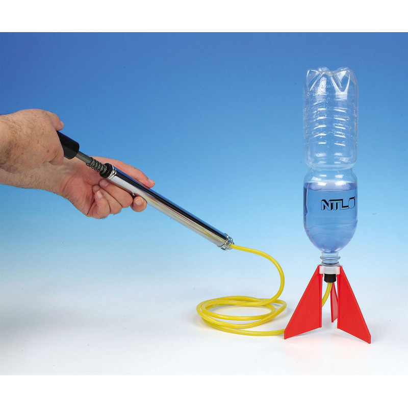 das Wasser wird mit hoher Geschwindigkeit durch das Ventil gepresst, und die Rakete steigt hoch