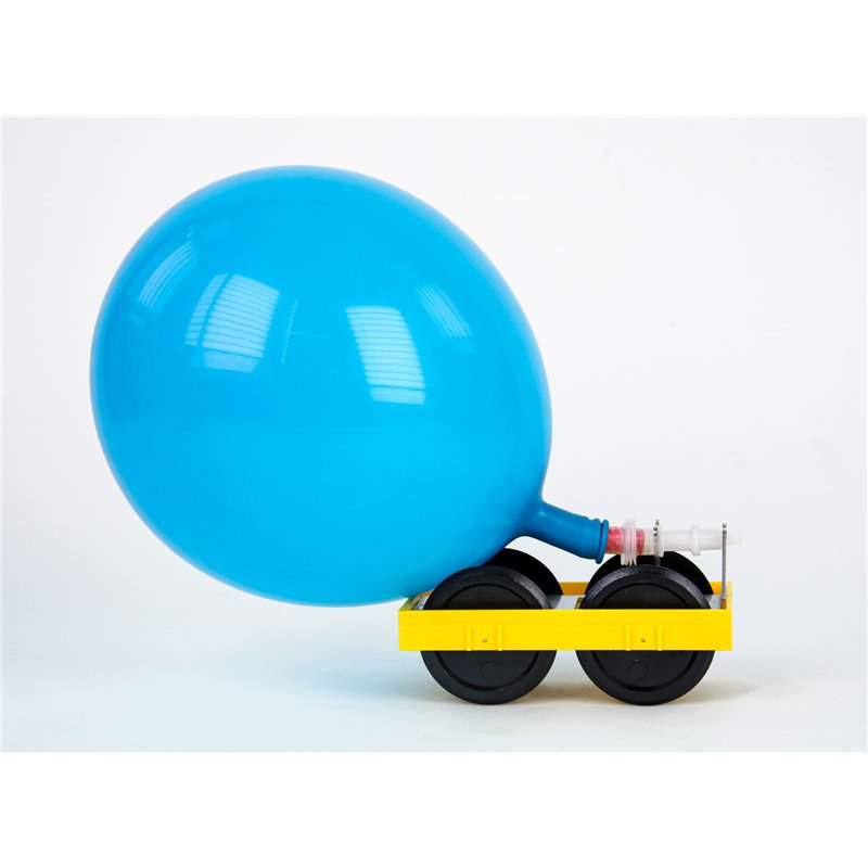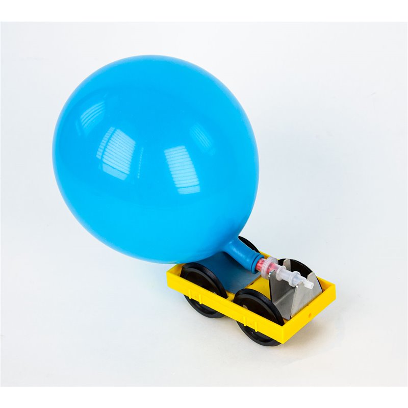 Zur Demonstration des Rückstoßes durch ein ausströmendes Gas (Luft) in Kombination mit einem Messwagen;