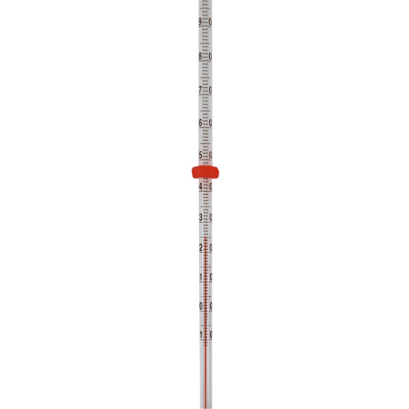 Für übliche Temperaturmessungen im Labor, auch in aggressiven Medien; Flüssigkeitsthermometer alkoholgefüllt, mit verschiebbarem Silikondreieck (durch das Dreieck kann das Thermometer nicht vom Tisch rollen, ebenso dient es als Markierungspunkt)Messbereich: -10 ... +110 °CTeilung: 1 °CGenauigkeit: ca. +/- 2 °CAbmessungen: D= ca. 6 mm, L= ca. 280 - 300 mmMasse: ca. 20 g