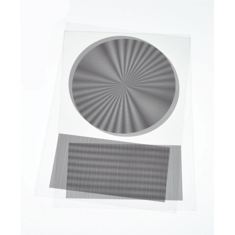 von zwei durchsichtigen Kunststoffplatten mit aufgedruckten konzentrischen Kreisen und parallelen Linien