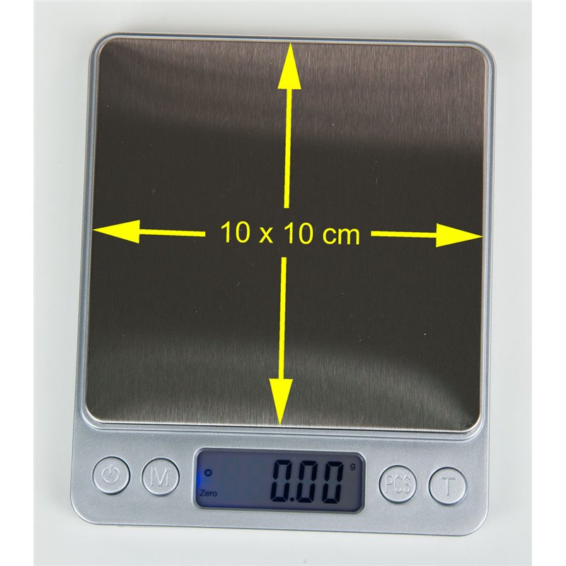 Wiegeschale klein: 102x102x7 mm (Innenmaße)