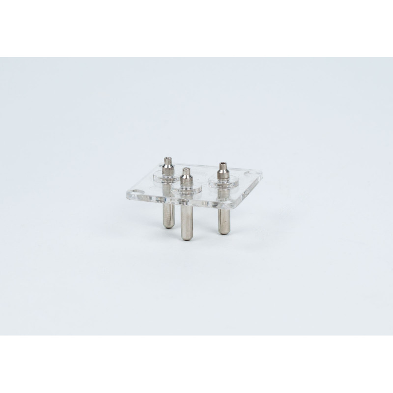 Gehäuse-Bodenplatte für Steckbausteine der NTL Schülerversuche; transparente Kunststoffplatte, drei eingebettete, vernickelte 4-mm Messingstifte mit LötkelchAbmessungen: 36 x 36 mmMasse: ca. 11 gzusätzlich erforderlich: P6300-1A Gehäuse-Oberteil für Steckbausteine der NTL SchülerversucheDE929-3T Kreuzschlitzschrauben, Satz 40 Stk.oder P6300-1B Gehäuse-Oberteil mit Buchse, für Steckbausteine der NTL Schülerversuche